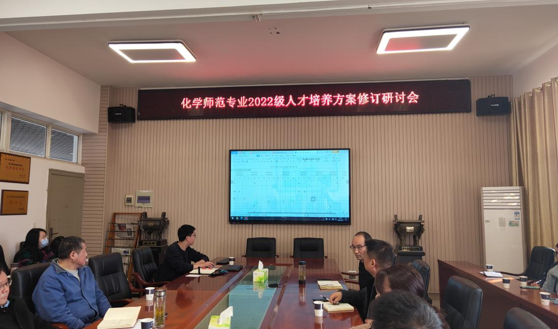 为进一步加强人才培养,2022年11月17日下午,bevictor伟德官网在14教西303会议室召开了化学师范专业2022级课程教学大纲及人才培养方案修订研讨会。会议由化学系主任舒文明老师主持,经理颜学敏、副经理吴爱斌以及各位骨干教师参加讨论。