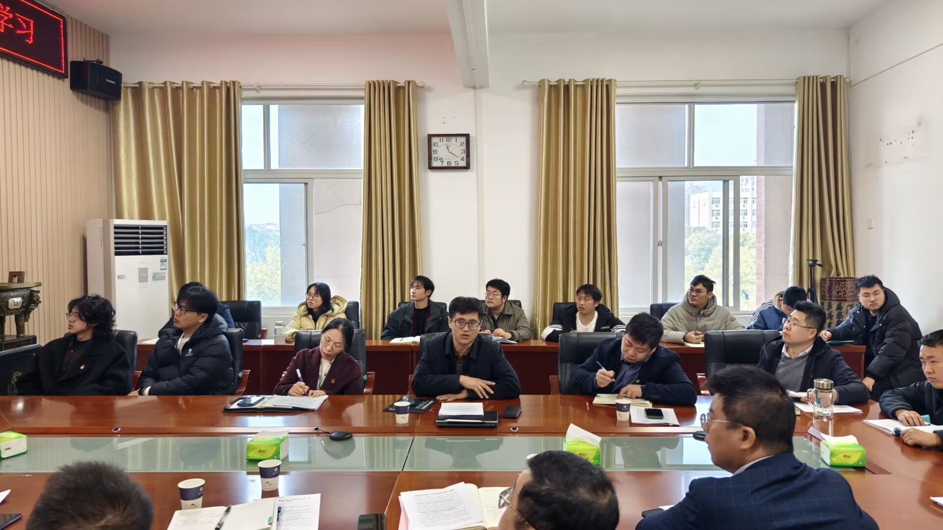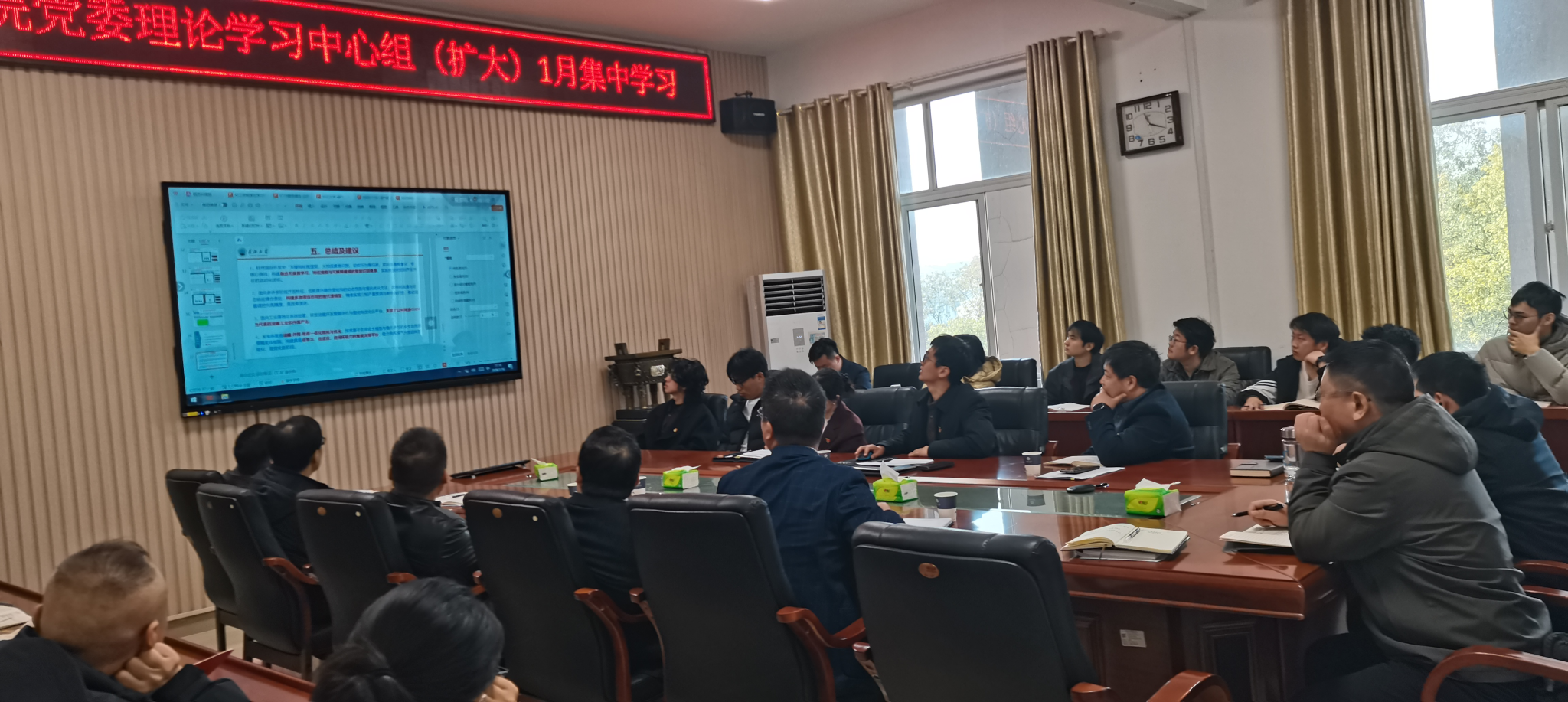 随后,会议集中学习了近期重要会议和文件精神。副经理谷惠文领学习近平总书记在中央经济工作会议上的重要讲话精神;经理赖璐领学《学习好贯彻好党的二十届四中全会精神》重要文章;党委副书记杨会军传达中共中央政治局关于党风廉政建设和反腐败工作的最新部署;经理助理黄河领学2026年湖北省科技创新大会精神。