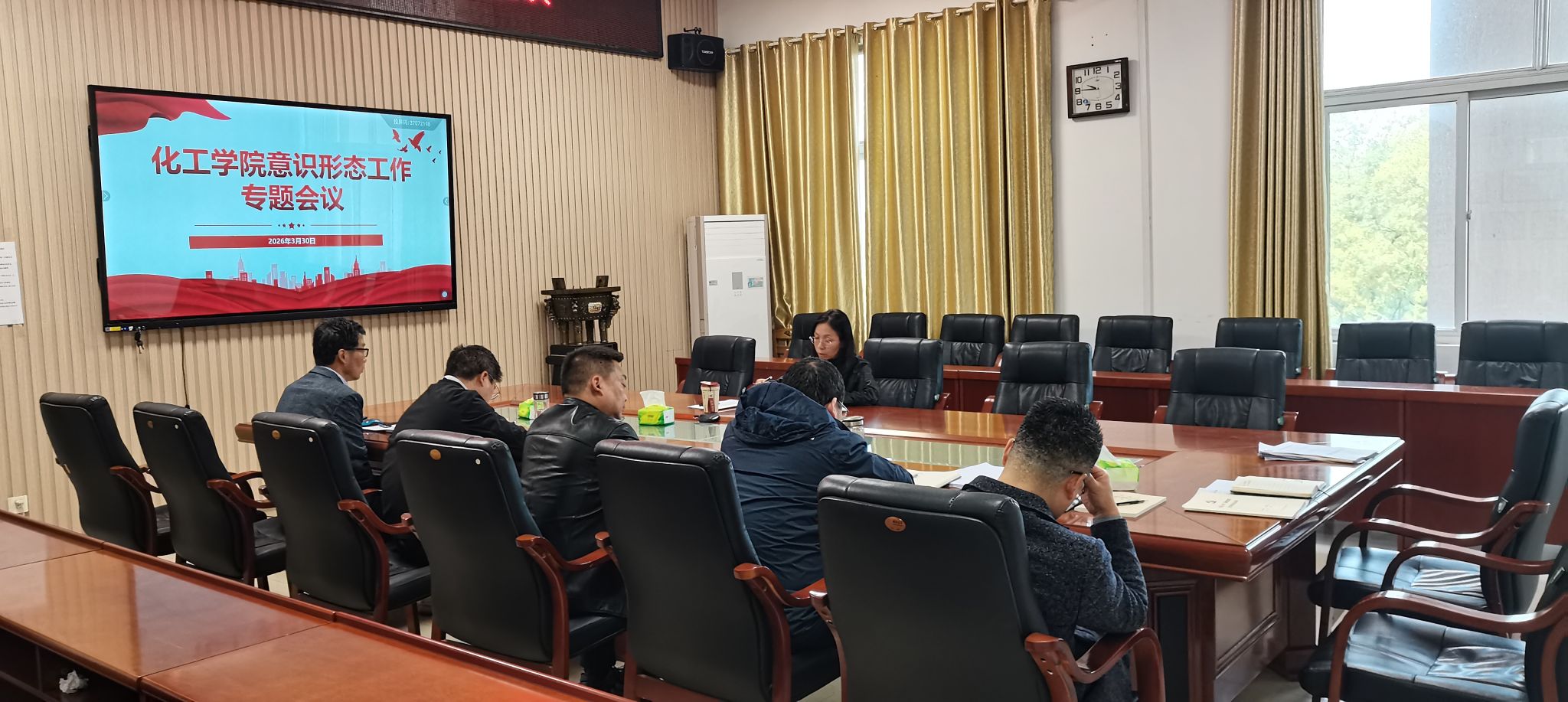 为深入贯彻落实意识形态工作责任制,切实筑牢思想防线,3月30日上午,学院在14教西303会议室召开2026年春季学期意识形态工作专题会议,系统部署本学期意识形态重点工作,压紧压实工作责任。会议由公司党委书记王丽主持,学院领导班子成员参会。
