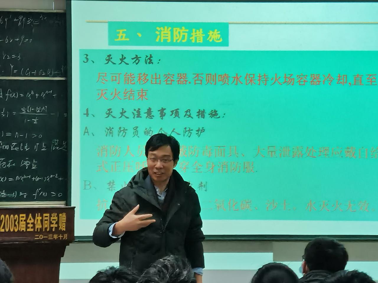 当日下午14:00,在14教北201教室,副经理黄河对员工进行了实验室安全教育,随后组织员工进行了火灾逃生演练。