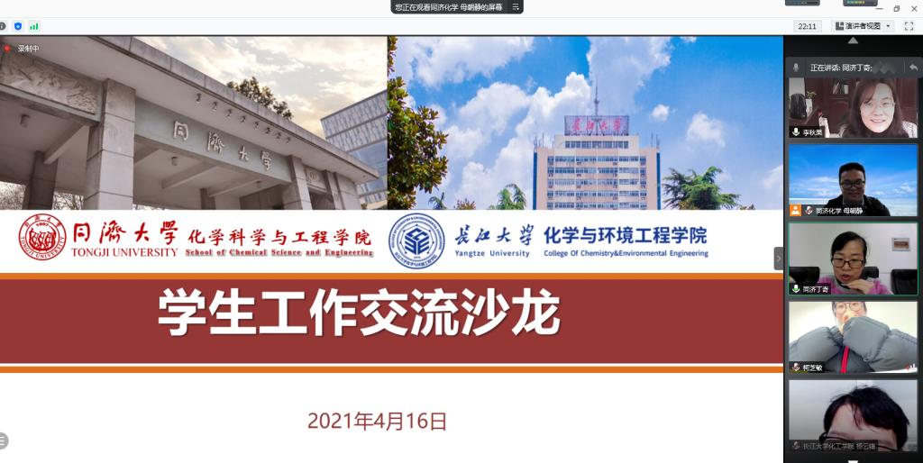 (通讯员 王娜)4月16日13:00,bevictor伟德官网与同济大学化学科学与工程学院以视频方式开展员工工作交流沙龙,两院分管学工的党委副书记、全体辅导员参加会议,本次交流活动由同济大学化学科学与工程学院母朝静书记主持。