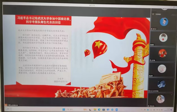 (通讯员 刘国芸)为深入学习习近平总书记给武汉大学参加中国南北极科学考察队师生代表重要回信精神,按照学院统一部署,在年级辅导员、班主任指导下,各班在1月17日至1月22日组织开展了主题班会。