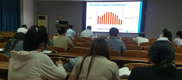 讲座中,谢剑耀深入剖析非离子表面活性剂。在基础科学方面,阐释其化学构成与独特性质,揭示在乳化、分散等应用中的作用奥秘。合成方法创新上,详述绿色化学与可持续路径,展示新方法对提升效率与产品质量的成效,如特定催化剂助力反应优化。论及生产关键技术,剖析大规模生产挑战,如杂质管控与质量稳定难题,并分享技术创新攻克之策,像先进分离与自动化控制手段的应用。