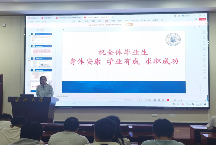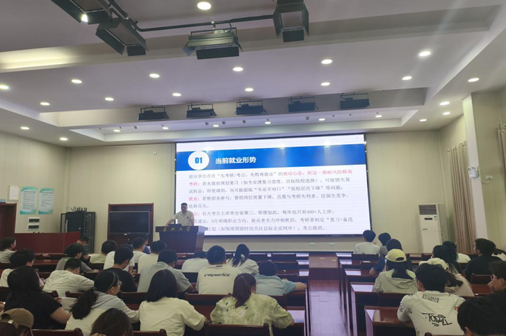 (通讯员 文天宇 伍吉玥)2025年9月17日下午,学院于东校区就业宣讲厅召开2026届毕业生年级大会暨就业动员大会。会议由辅导员周学素主持,党委副书记杨会军,王陈、蔡略等老师以及部分2026届毕业生参加此次会议。