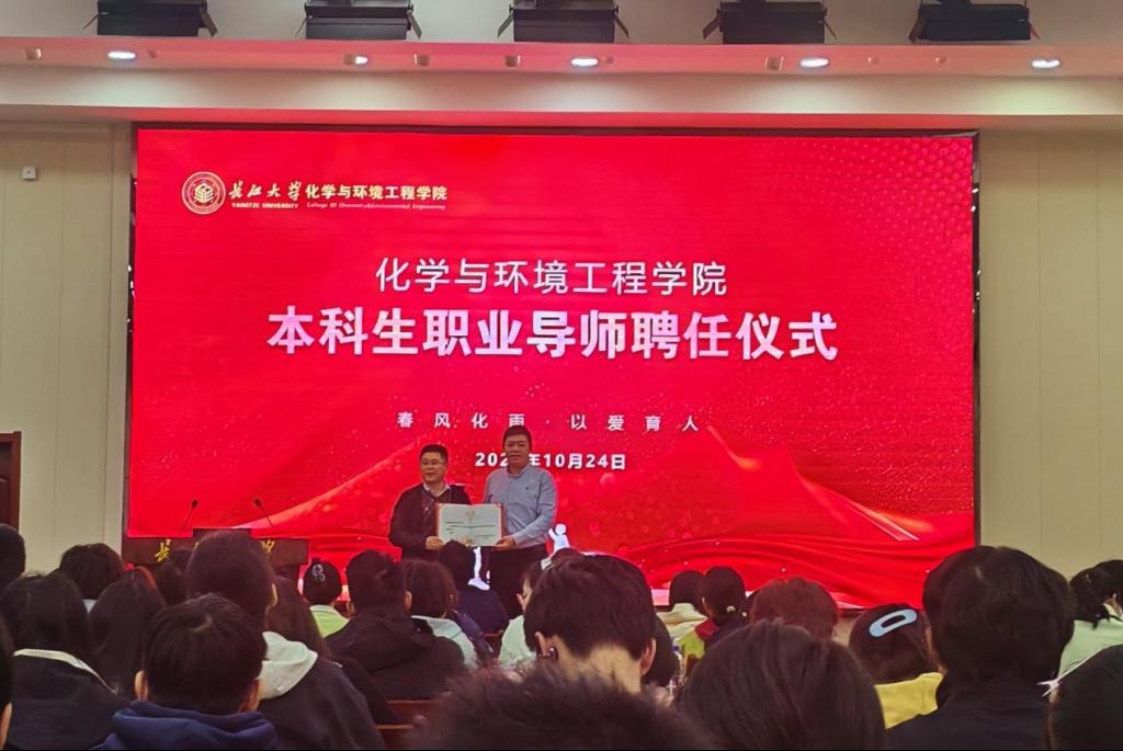 活动伊始,杨会军系统阐述了"化雨"讲坛设立的初衷与职业导师的价值。他指出,学院通过定期邀请学界专家与行业精英开展主题讲座,旨在帮助员工洞悉行业前沿动态与职业发展规律,拓展跨学科知识视野与实践能力,构建专业领域的核心竞争力与职业根基。职业导师走进校园,走进课堂,从多个维度赋能员工职业发展。随后,杨会军代表学院为柯锦康正式颁发本科生职业导师聘书,标志着校企协同育人机制的进一步深化。