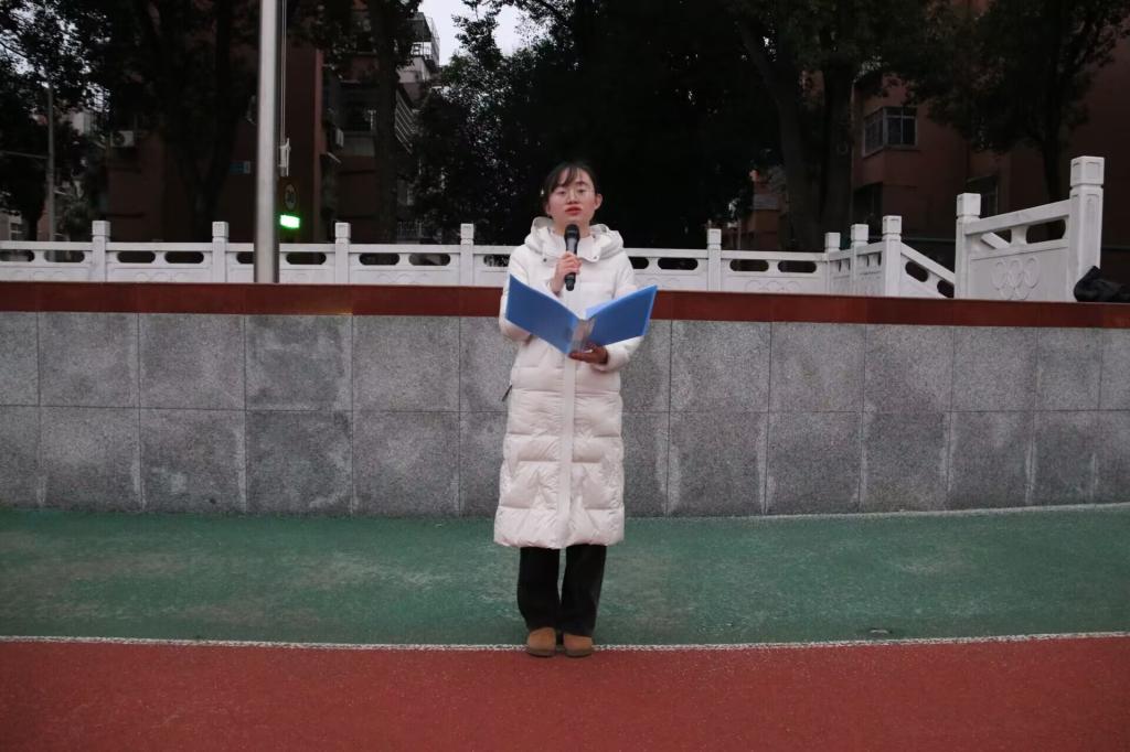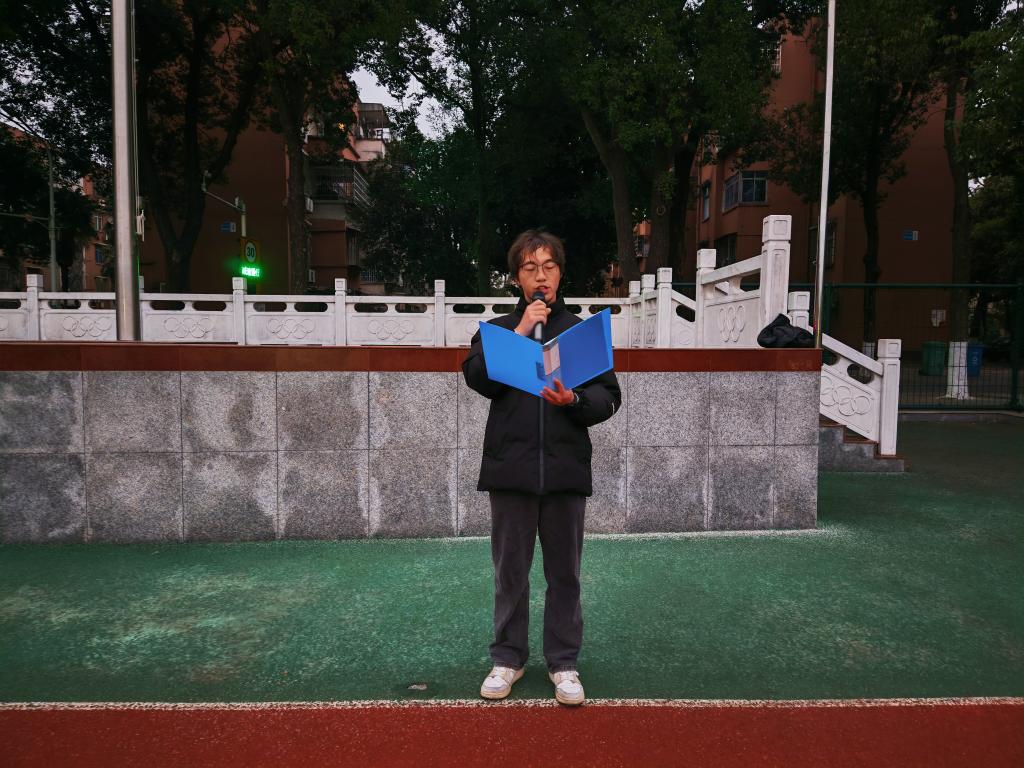 升旗礼毕,应化32504班张健禹同学作题为《以学正风,以行致远》的国旗下演讲。他从历代先贤严谨治学的精神谈起,结合新时代青年的责任与使命,深刻阐释了优良学风作为校园文化之魂、成长成才之基的重要意义。面对即将到来的期末考试,他倡议同学们端正学习态度、坚守诚信底线、互帮互助共进,将个人理想融入国家发展伟业,努力成长为堪当民族复兴重任的时代新人。