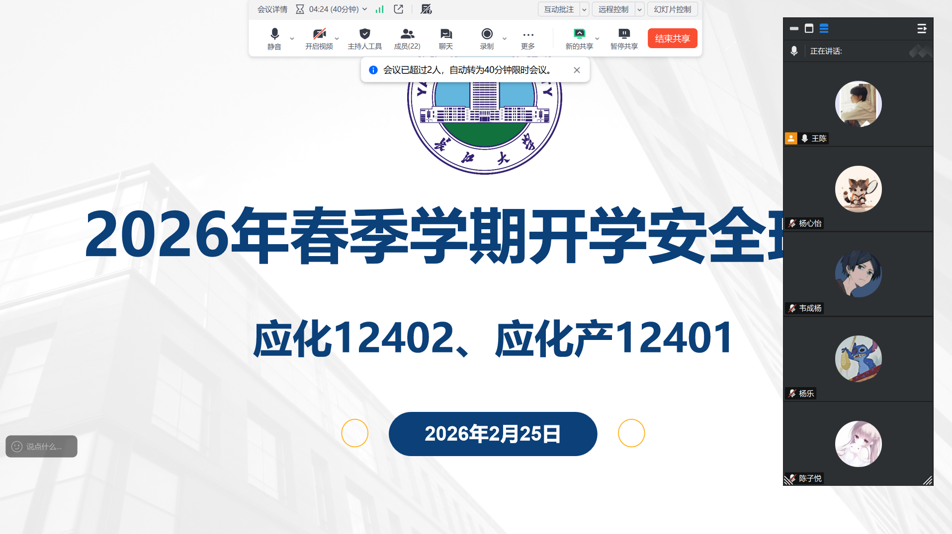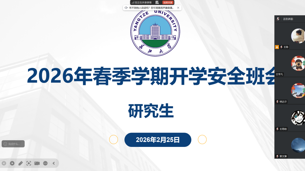 (通讯员 王陈)为全面落实学校开学工作部署,切实强化员工安全防范意识,引导员工明确新学期奋斗目标,扎实推进员工教育管理工作开好局、起好步,2月22日至2月26日,bevictor伟德官网组织本科生、研究生各班级,通过线上会议形式陆续召开2026年春季学期开学主题班会。