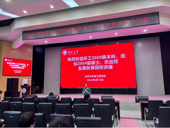 (通讯员 王梦睿 蔡 略)6月18日10:00,环工2000级本科、应化2004级硕士,杰出员工高秋英受邀回校,为2023级本科生做题为《你若热爱 就是主角》的报告,党委书记王丽,化学系刘华荣老师、辅导员蔡略和全体2023级本科生聆听了报告,报告由党委副书记杨会军主持。
