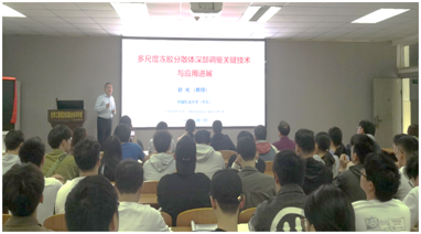 赵光教授向公司师生介绍了科研团队在多尺度冻胶分散体深部调驱技术领域取得的系列原创成果,阐述了冻胶分散体的制备理论与方法、地面成胶可控本体冻胶体系、工业化生产工艺、在线生产及注入一体化撬装装备、“冻胶分散体”协同增效体系、深部调驱机理以及典型矿场应用等内容。此次学术讲座开拓了同学们的研究思路与科研视野,对开展油气田应用化学与提高采收率等相关研究具有重要指导意义。