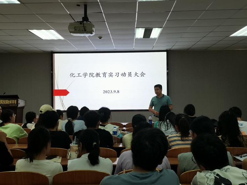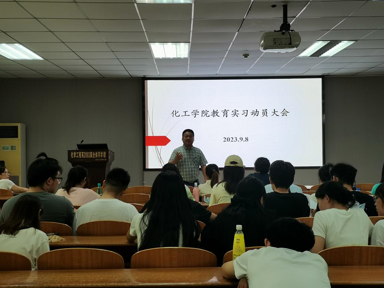 化学系主任舒文明老师嘱咐同学们要合理安排时间,平衡好毕业实习、考研与找工作等关系。实习指导老师童金强介绍了教育实习的基本要求和注意事项,指明整个实习过程中指导教师和员工各自的职责。他强调同学们要听从引导,实习期间注意人身安全、财产安全。副主任刘华荣对本次教育实习提出细致要求,强调必须规范填写实习手册,提交有质量的教育研究报告。
