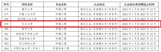 近日,中国工程教育专业认证协会发布了《关于公布西南石油大学机械工程等422个专业认证结论的通知》,公司环境工程专业顺利通过认证,有效期6年,即2022年1月至2027年12月,为今年全校专业评估(认证)工作赢得了开门红。