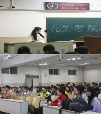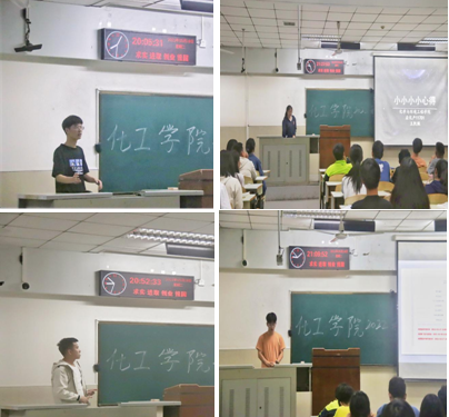 接着,来自学院五大专业的优秀学长学姐依次分享他们的考研经历和学习经验。来自2017级化工专业的朱帅波学长以初试成绩396分的高分考取了华东理工大学,“建议同学考研择校要结合个人情况、学习能力进而去选择自己稳妥并且心仪的院校与专业,最好是相似专业或者同专业”;来自2017级化学专业的韩雨依学姐以初试成绩393分考取了北京师范大学,表示:“专业课的复习应该一个知识点都不要漏过,建议学弟学妹们争取每一个知识点都达到心中有数”;来自2017级环工专业的汪小龙学长以初试成绩366分考取了华中科技大学,汪小龙学长表示:“英语的复习应该从准备考研开始一直到考研结束为止,单词应该天天都要背以及复习。英语真题要字字句句去学习,而不是仅仅当成刷题的工具”;来自2017级高材专业的章东都学长以初试成绩390分、高数143分的高分考取了湖南大学,章东都学长分享了在数学学习的经验,指出“对于数学的要求给同学们指出了三个阶层,对于数学不同要求的同学应该有不同的复习指标,基础知识要稳扎稳打,真题要练,每天保持手感”;来自2017级应化专业的王凯佩学姐以初试成绩347分考取了哈尔滨工业大学,表示“考研过程中心态的调整很重要,到最后一定要坚持,不能懈怠”。