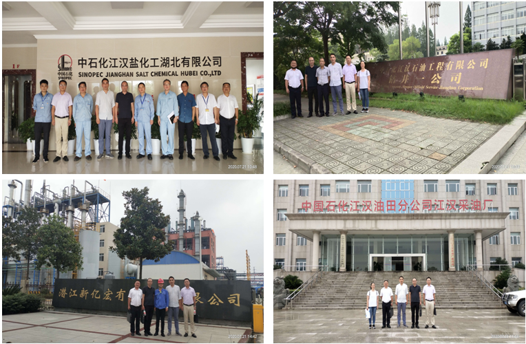 颜经理一行先后来到中石化江汉盐化工湖北有限公司、中石化江汉油田分公司江汉采油厂、潜江新亿宏有机化工有限公司、中石化江汉石油管理局有限公司水电分公司、中石化江汉石油工程有限公司钻井一公司、江汉油田分公司采油气工程技术服务中心,受到各企业经理的热情接待,双方进行了深入交流。