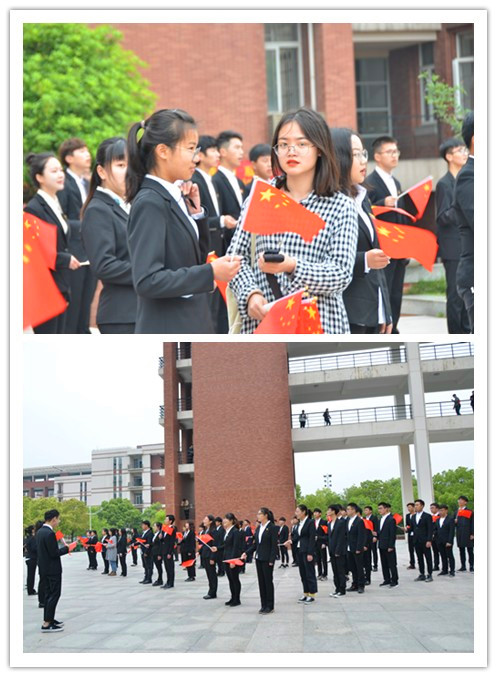 “mv拍摄”于4月29日13时许在东校区十四教拉开帷幕。全体演唱同学穿正装、佩戴团徽、手持小国旗参加。从空中俯视,1919字样清晰可见,反映了广大学子传承“五四精神”的坚定信念。