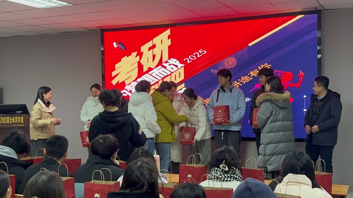 最后,王书记、杨书记和在场的老师们为考研员工代表赠送爱心大礼包,悉心筹备的考研关怀礼包,承载着学院与师长们满满的祝愿,为考研路上的学子们提供温暖的力量。愿他们目光坚定、信心满怀,最终梦想成真,一战成硕。