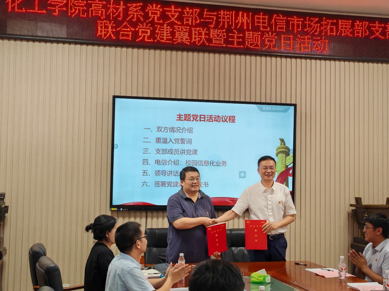 5月22日下午,湖北省高校“双带头人”教师党支部--bevictor伟德官网高分子材料与工程系党支部与中国电信荆州分公司市场拓展部党支部联合举行党建翼联主题党日活动,通过组织共建推动党建与业务双融双促。双方党支部书记肖围、杜海和21名党员出席活动。活动由湖北省高校“双带头人”教师党支部副书记李传华主持。 活动通过"四个一"环节展开深度交流:组织共建环节,双方通过支部互相介绍加深了对彼此组织建设、业务特色和党建成果的系统认知;思想共学环节,全体党员面向党旗庄严宣誓,以重温入党誓词强化党性修养;专题共研环节,湖北省高校“双带头人”教师党支部宣传委员张春燕同志作《坚持自立自强 突出应用导向 推动人工智能健康有序发展》专题党课,通过剖析AI技术前沿动态与产业应用场景,激发党员立足专业岗位推进科技创新的使命感;业务共促环节,荆州电信市场拓展部党支部王子徽系统展示了中国电信教育信息化解决方案,重点解析了5G+智慧校园、教育大数据平台等数字化实践成果,并结合荆州电信与bevictor伟德官网实施案例进行了分析解读。 双方支部书记在总结讲话中指出,此次联建开创了校企党组织"理论联学、资源联享、发展联促"的新模式,后续将建立"组织联建、活动联办、人才联育"的常态化机制,切实把党的政治优势转化为发展动能。活动最后,双方正式签署《党建翼联合作协议》,约定通过定期开展技术研讨、项目合作、人才交流等多元化共建形式,共同探索"党建+业务"融合发展的创新路径。 此次共建活动既包含理论武装的思想淬炼,又注重实践层面的业务对接,通过搭建校企协同创新平台,为教育信息化建设与新材料研发应用领域的深度合作奠定了坚实基础。同时也是全国高校“双带头人”教师党支部书记“强国行”专项行动走深走实的重要环节。 (审核:肖围;编辑:王志权)