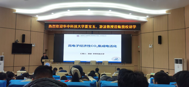 2026年1月9日上午,华中科技大学夏宝玉、游波两位教授在东校区11教学术报告厅为师生带来了两场聚焦CO2资源化利用的高水平学术报告。本次报告会由学院赖璐经理主持,肖围副经理、谷惠文副经理、部分青年教师、学院研究生及储能科学与工程专业本科生参加了此次活动。