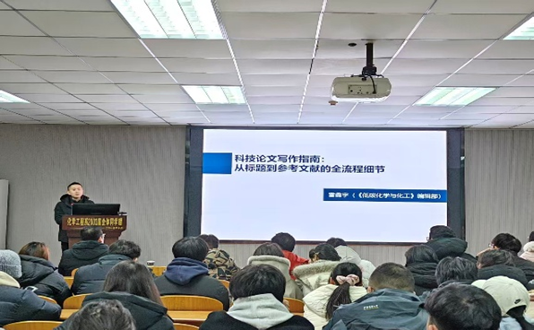 1月19日下午,西南化工研究设计院信息中心副主任陈曲、责任编辑雷鑫宇受邀在东校区14号教学楼北201开展学术交流活动,为师生带来高质量论文投稿与科技论文写作专项指导。活动由学院副经理肖围教授主持,部分青年教师、学院研究生参加了此次活动。 首先,西南院陈曲介绍了西南院期刊的总体情况与发展愿景,并就《精细化工》的栏目设置进行了详细说明。随后,雷鑫宇围绕“科技论文写作指南:从选题到全文规范细节” 展开分享。他从论文选题的创新性挖掘、框架搭建的逻辑思路、内容撰写的专业规范、审稿反馈的应对技巧等维度,结合多篇实例论文详解了高质量学术成果的输出路径,助力师生提升学术写作的实操能力与规范意识。 提问交流环节,员工们以数据呈现、论文润色、机理分析及刊物偏好等问题与专家进行了深入的探讨。最后肖围副经理对西南院信息中心提供的期刊宣讲与写作指导进行了感谢,并建议西南院信息中心与学院保持长期联系,共促发展。 (审核:肖围 编辑:常艳玲)