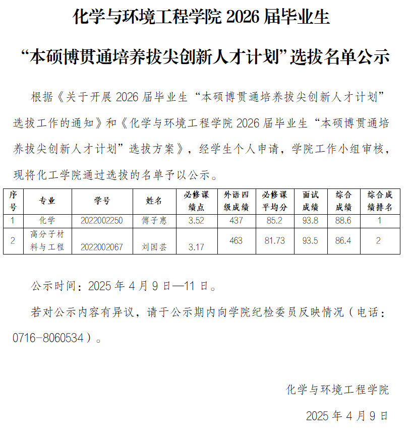 bevictor伟德官网2026届毕业生“本硕博贯通培养拔尖创新人才计划”选拔名单公示