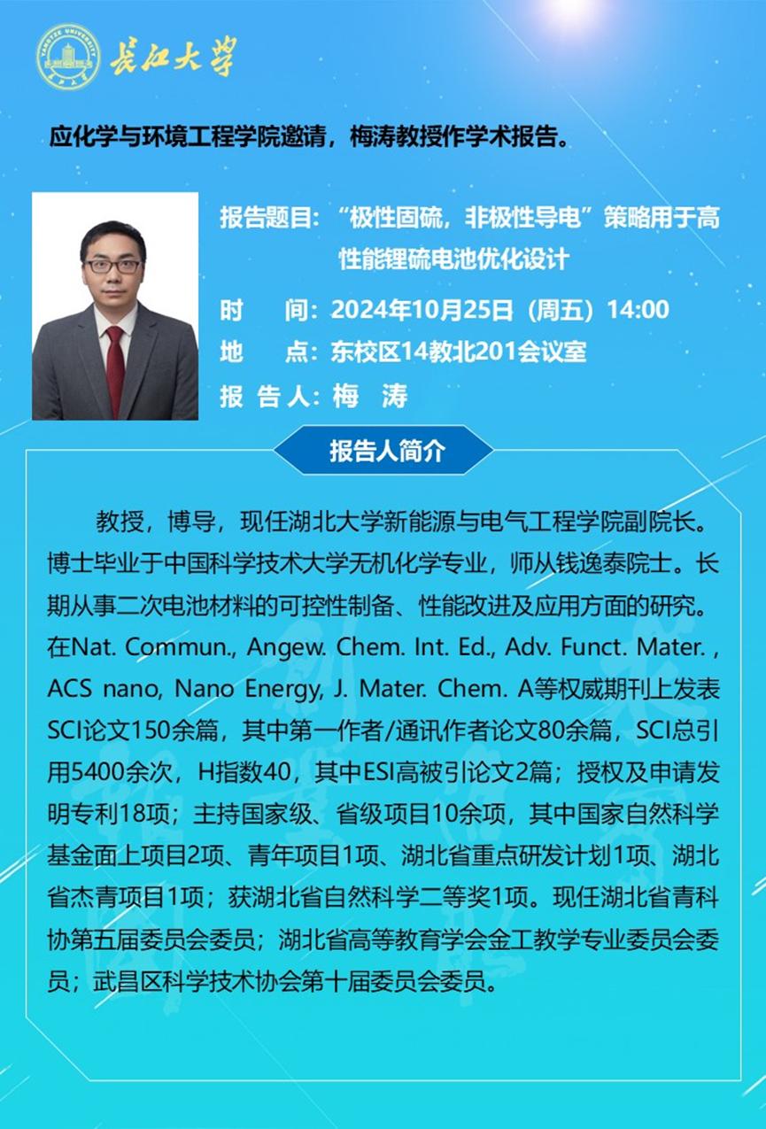 长江化工讲坛:“极性固硫,非极性导电”策略用于高性能锂硫电池优化设计