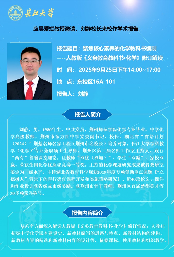 长江化工讲坛:聚焦核心素养的化学教科书编制 ----人教版《义务教育教科书·化学》修订解读