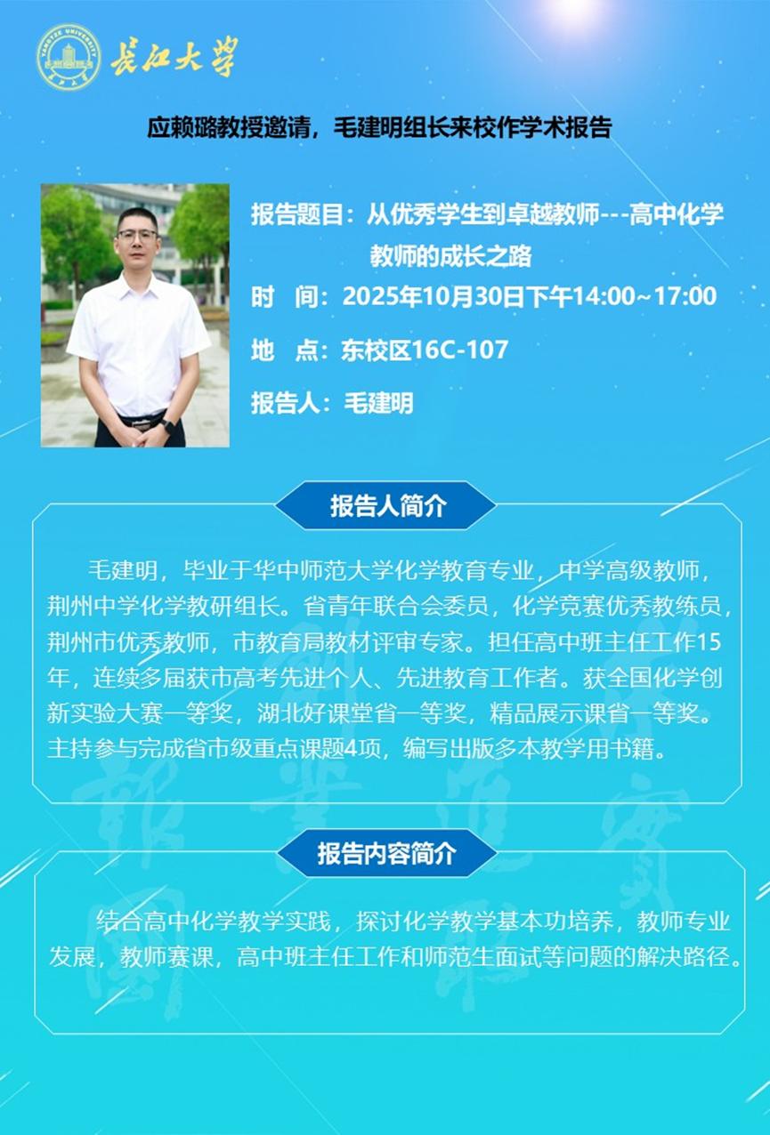 长江化工讲坛:从优秀员工到卓越教师---高中化学教师的成长之路
